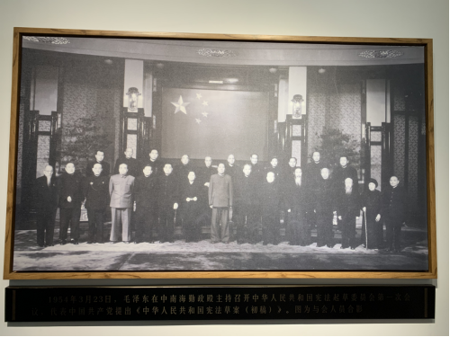 进入馆区,首先看到的就是大厅里毛主席的雕像,他手握五四宪法草稿,陷入沉思。杭州是新中国第一部宪法——1954年宪法的起草地。1953年12月28日至1954年3月14日,毛泽东主席率领宪法起草小组成员,在西子湖畔度过了77个日夜,起草了宪法草案初稿,史称“西湖稿”,为新中国第一部宪法的正式诞生奠定了重要基础。