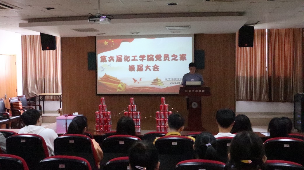 本次大会由第六届党员之家秘书长袁鹏参与主持。大会第一项议程,秘书长袁鹏首先对到场参加换届大会的成员表示衷心的感谢,也对新加入党员之家这个大家庭的新成员表示热烈欢迎。他表示在过去的一年里,只有在党员之家各个部门通力协作的条件下,才能够圆满完成学院第七次党员代表大会、两次党员发展工作,以及今年上半年建党百年的系列庆祝活动。智慧党建、卓越化工等平台宣传的关于党建的成果,也离不开老师们的辛勤指导,以及全体小伙伴们的辛苦付出。他分享了过去一年自己在党家工作的体验与收获,也对全体新成员们表达了衷心的期许。