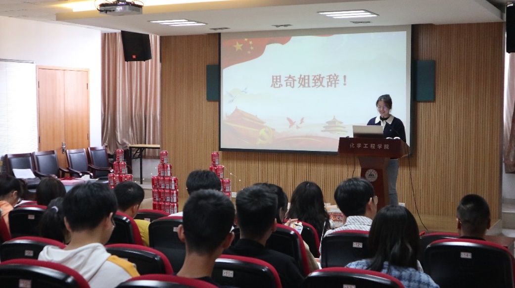 大会的最后一项议程,党员之家指导老师陈思奇老师在全体成员最热烈的掌声中上台致辞。结合自身的学习经历和工作经历,她分享了自己初到化工学院接触党建工作时的感受和心态,同时也表示“期待在这里遇见更加强大的我和更加优秀的你们”。