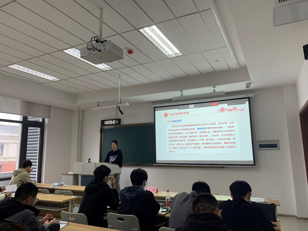 接下来,辅导员陈思奇表示疫情背景下党的建设仍旧获得了丰硕的成果,中国共产党领导的中国制度依旧显示出了强大的优势和威力。历史再一次以铁的事实证明了只有共产党才能救中国,只有加强党的领导才是打赢疫情防控阻击战以及全面修复战后创伤的坚强政治保障。