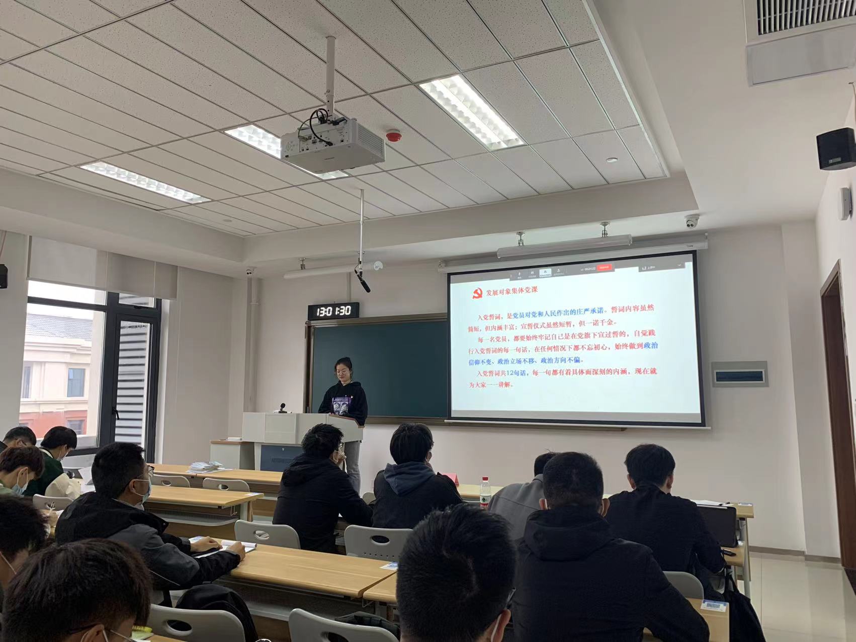 本次集体党课培训由《入党誓词》宣誓仪式与发展对象党课学习两大部分展开。“我志愿加入中国共产党,拥护党的纲领,遵守党的章程,履行党员义务,执行党的决定,严守党的纪律,保守党的秘密,对党忠诚,积极工作,为共产主义奋斗终身,随时准备为党和人民牺牲一切,永不叛党。”教室里,大家含着饱满的感情面向党旗郑重宣誓,用坚定的眼神说出了誓词的一字一句。誓词虽然只有12短句,80个字,但是每一句都有着具体而深刻的内涵。入党誓词重于泰山,那句“随时准备为党和人民牺牲一切”背后寄予着千万先烈的厚望和千万党员的信仰。