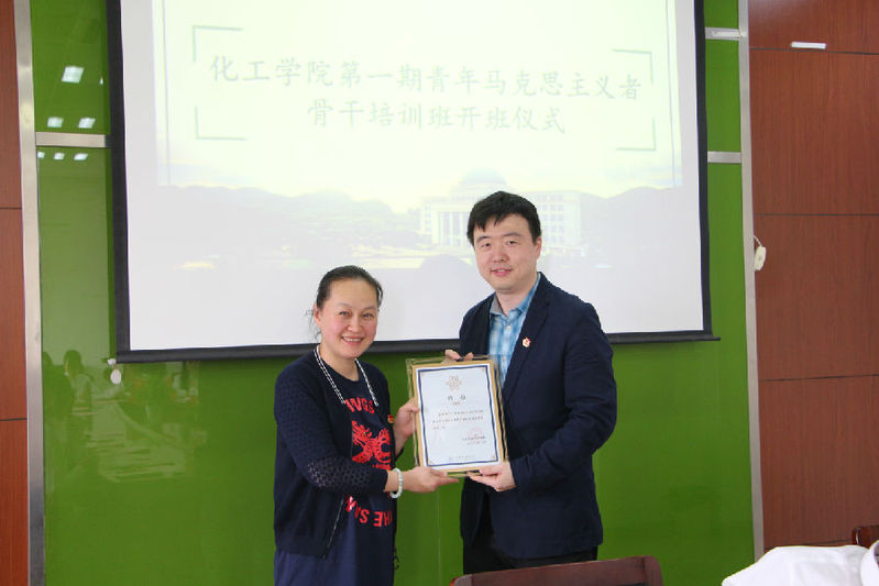 学院聘请校团委书记贾侃担任化工学院首期青马干训班理论导师,学院学生工作负责人颁发聘书。