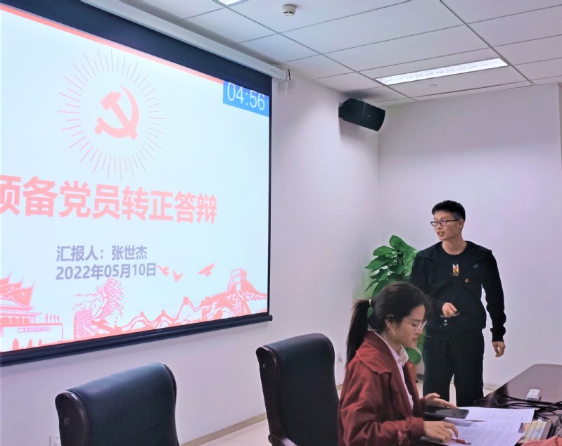 刘娜娜、于瑄、龚柳枝、王潇剑、王梦欣、张世杰、时怀杰、王朝晖8位预备党员在线上汇报了预备期间自己在思想,生活,工作等各方面的情况。然后由他们对应的党建联系人向大会介绍其在预备期的培养考察情况,支委会向支部大会报告了他们对预备党员的审查情况,与会党员对预备党员是否符合党员条件发表了意见。