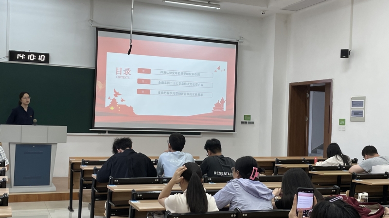 为深入学习贯彻党的二十大精神,准确把握党章修正的重大意义,引导党员牢固树立党章意识,全面、准确理解党章内容。徐霞老师以《学习新党章,奋进新征程》为主题,从党章的地位和作用、党章修改的主要内容、贯彻落实新党章等三个方面进行报告,以鲜明的主题、生动的语言,结合身边事例、深入浅出、全面翔实地解读了新修订党章的内容,帮助各位党员进一步学习理解和准确把握党章的核心要义。