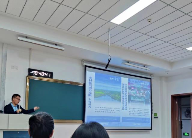 首先,陈玉华老师解读考察安排是强烈的基层实践经验导向。陈老师从习总书记在浙江考察李祖村和义乌引出,说明了乡村振兴的潜力以及一直以来乡村对党对社会的贡献。随后,陈老师借鉴义乌商贸城、“枫桥经验”、大运河文化等例子,指出要坚持好,发展好新时代的“枫桥经验”,坚持把握好党的群众路线,正确处理好人民矛盾,紧紧依靠人民群众,把问题解决在基层,以人民为中心,都值得党员同志们进行深入学习和思考。