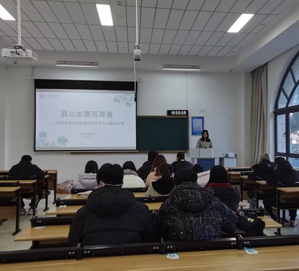 2023年12月22日下午4点,分析化学方向师生联合党支部、应用电化学方向师生联合第一党支部、应用电化学方向师生联合第二党支部、卟啉与食药分析方向师生联合党支部、博士研究生直属党支部在莫干山校区公共教学楼106举办了“我以志愿写青春—杭州亚运会中的新时代大学生志愿者形象”为主题的红色半月谈主题党课,本次党课有幸邀请到陈思奇老师作为主讲人, 在陈思奇老师的带领下,了解到了大学生志愿者在杭州亚运会中的服务情况,领略了志愿者们在亚运会服务中所体现的志愿服务意识和优良精神风貌。