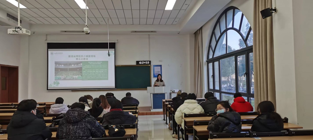 陈思奇老师介绍了德清地理信息小镇篮球场的基本情况,该场馆承办杭州亚运会三人制篮球比赛项目,设有观众区、比赛地区、电视转播区等功能模块,2022年5月26日场馆正式启用。