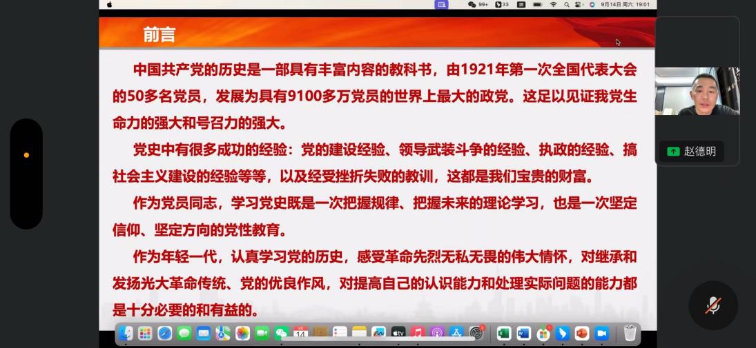 2024年9月14日晚间,赵德明老师在线上为大家做了题为“怀革命先烈,传承红色基因”的报告。