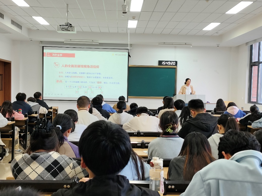 2024年11月7日下午3:20,分析化学方向师生联合党支部、应用电化学方向师生联合第一党支部、应用电化学方向师生联合第二党支部、卟啉与食药分析方向师生联合党支部在莫干山校区公共教学楼306教室举办了以“与青年学生谈理论学习”为主题的红色半月谈主题党课,本次党课邀请了乔靖芳老师作为主讲人。
