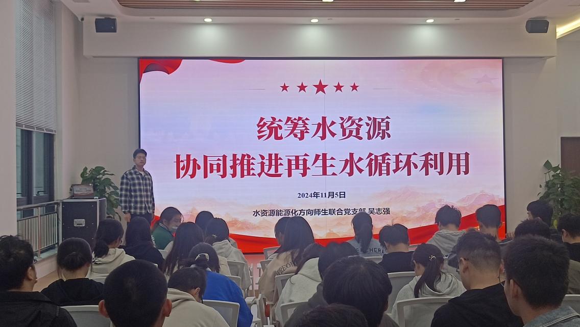 2024年11月5日星期二下午,化学工程学院学生党员、入党积极分子齐聚图书馆东侧三楼党群服务大厅,参加由学院党员之家举办的“红色星期二”党员固定学习活动。本次学习的主题为“统筹水资源,协同推进再生水循环利用”,由化工学院水资源能源化方向师生联合党支部吴志强同志担任主讲人。