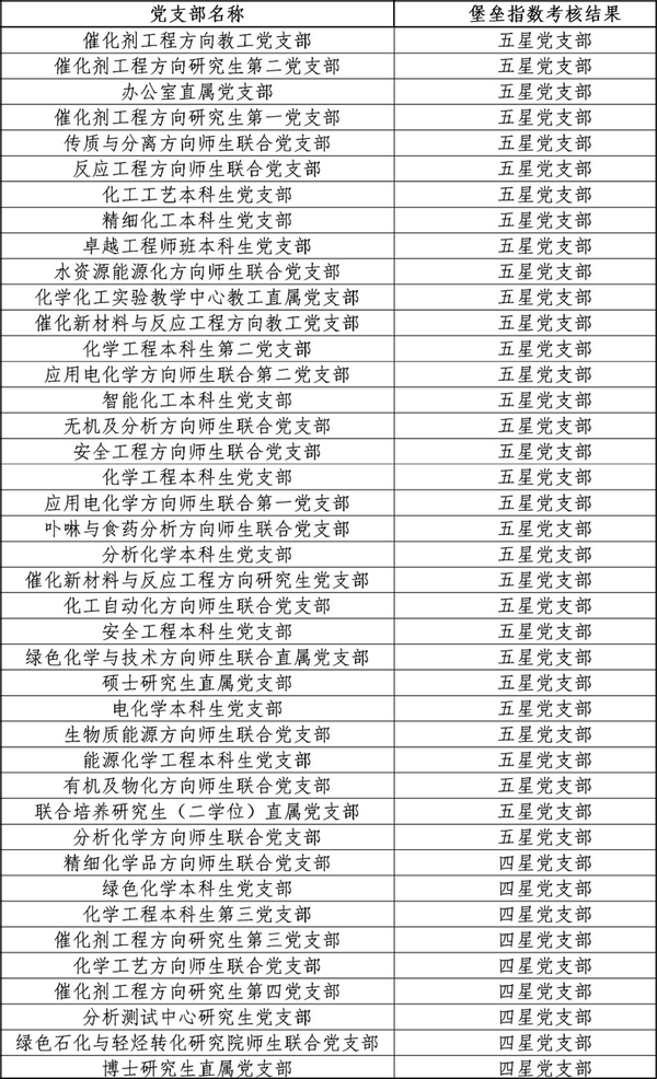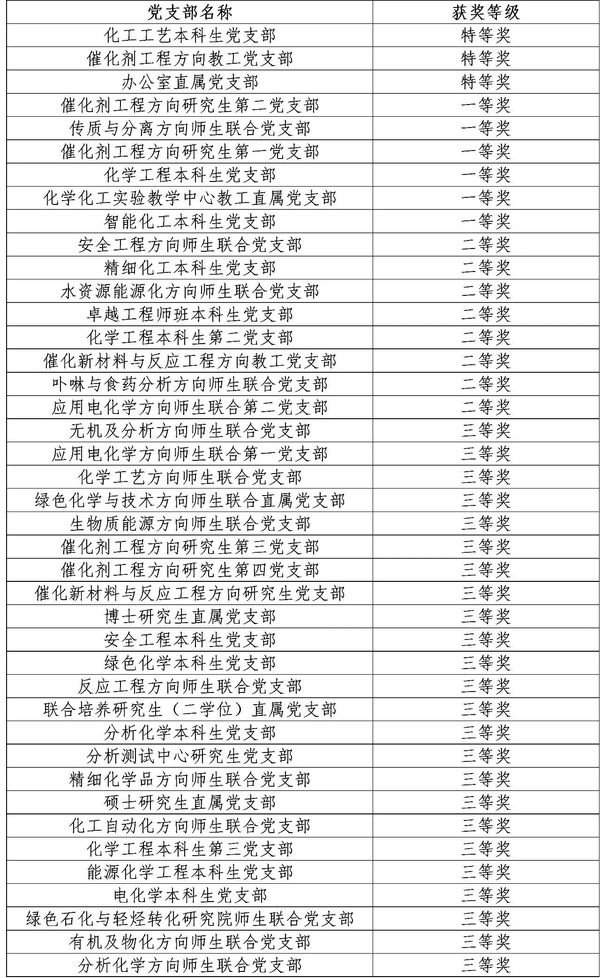 化学工程学院第二十届支部建设创新评选结果