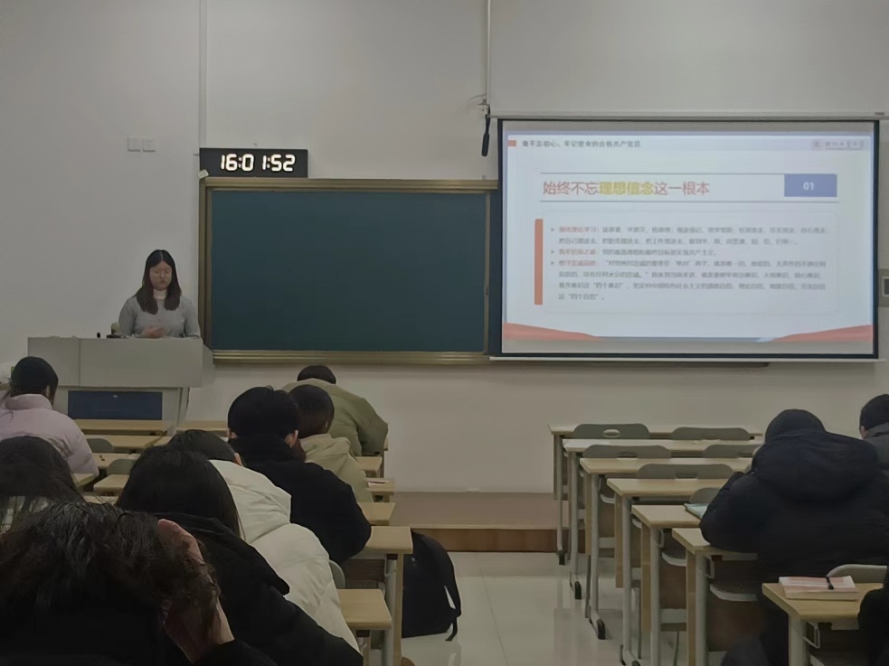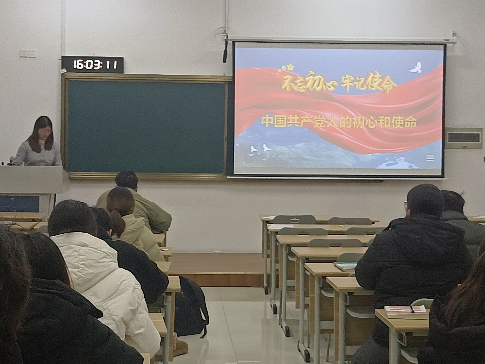2024年12月23日下午3点半,催化剂工程方向研究生第一党支部、催化剂工程方向研究生第三党支部、催化剂工程方向研究生第四党支部在莫干山校区公共教学楼109举办了“中国共产党人的初心和使命”为主题的红色半月谈主题党课,本次党课有幸邀请到了陈思奇老师作为主讲人,向全体党员同志重温了什么是中国共产党人的初心和使命,强调了共产党人坚守初心使命的重要性以及如何做好一名不忘初心、牢记使命的合格共产党员。