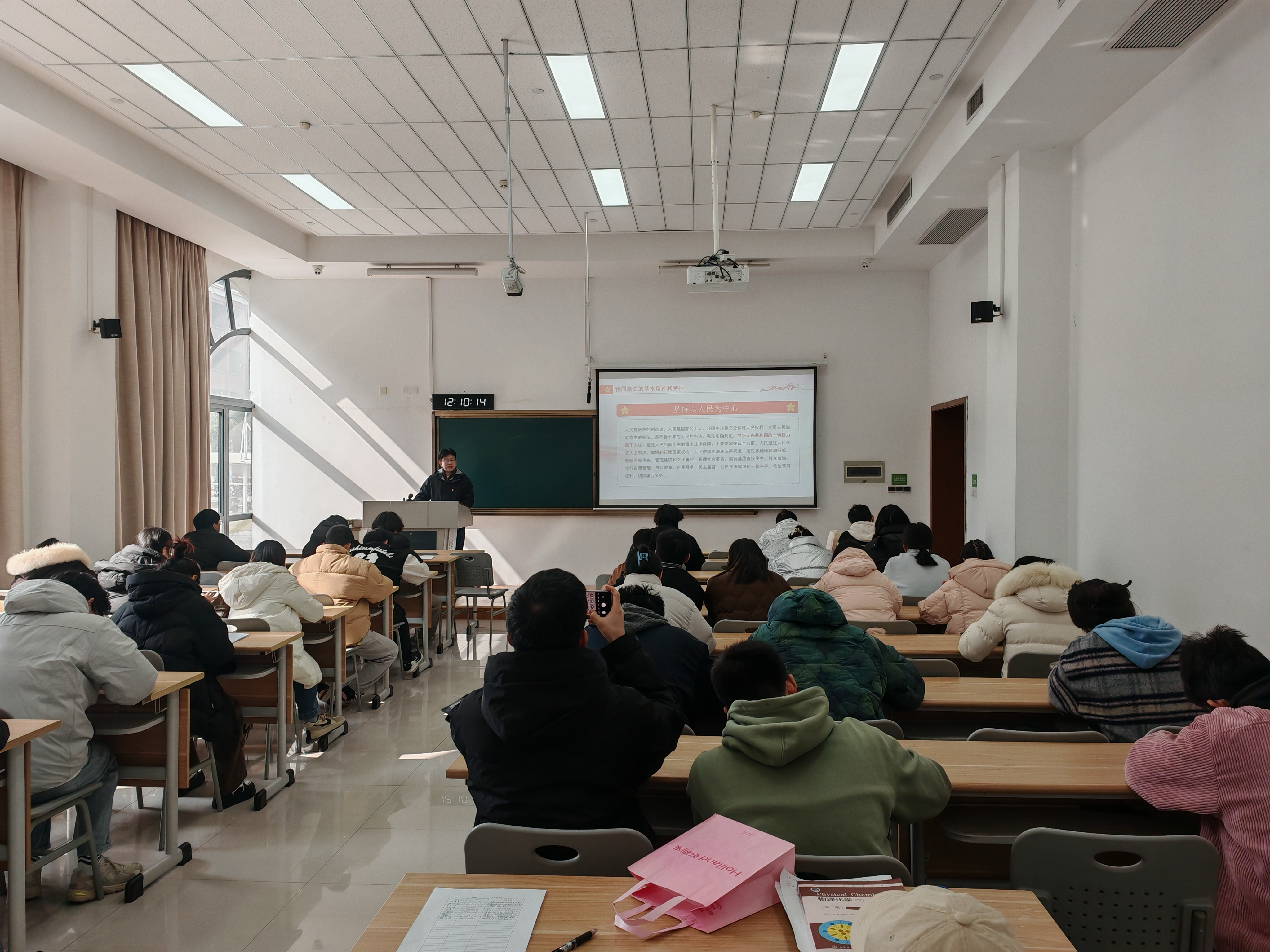郑士涛老师作为主讲人,围绕我国宪法的基本精神和特征、新宪法修改的重点内容及重大意义、我国设立国家宪法日的目的和意义、新时代如歌坚定宪法自信弘扬宪法精神等四部分,为现场师生进行了详尽的内容分享。