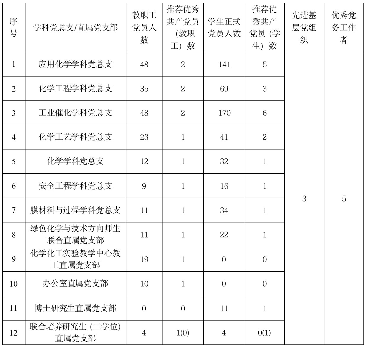 (一)党总支、直属党支部推荐:按照公平、公正、公开原则,各学科党总支、直属党支部,召开党总支(直属党支部)委员会议,确定院级优秀共产党员、优秀党务工作者和先进基层党组织推荐名单,《推荐名单汇总表》(附件2)于5月20日(周二)10:00前电子稿发至lidanlin@zjut.edu.cn。