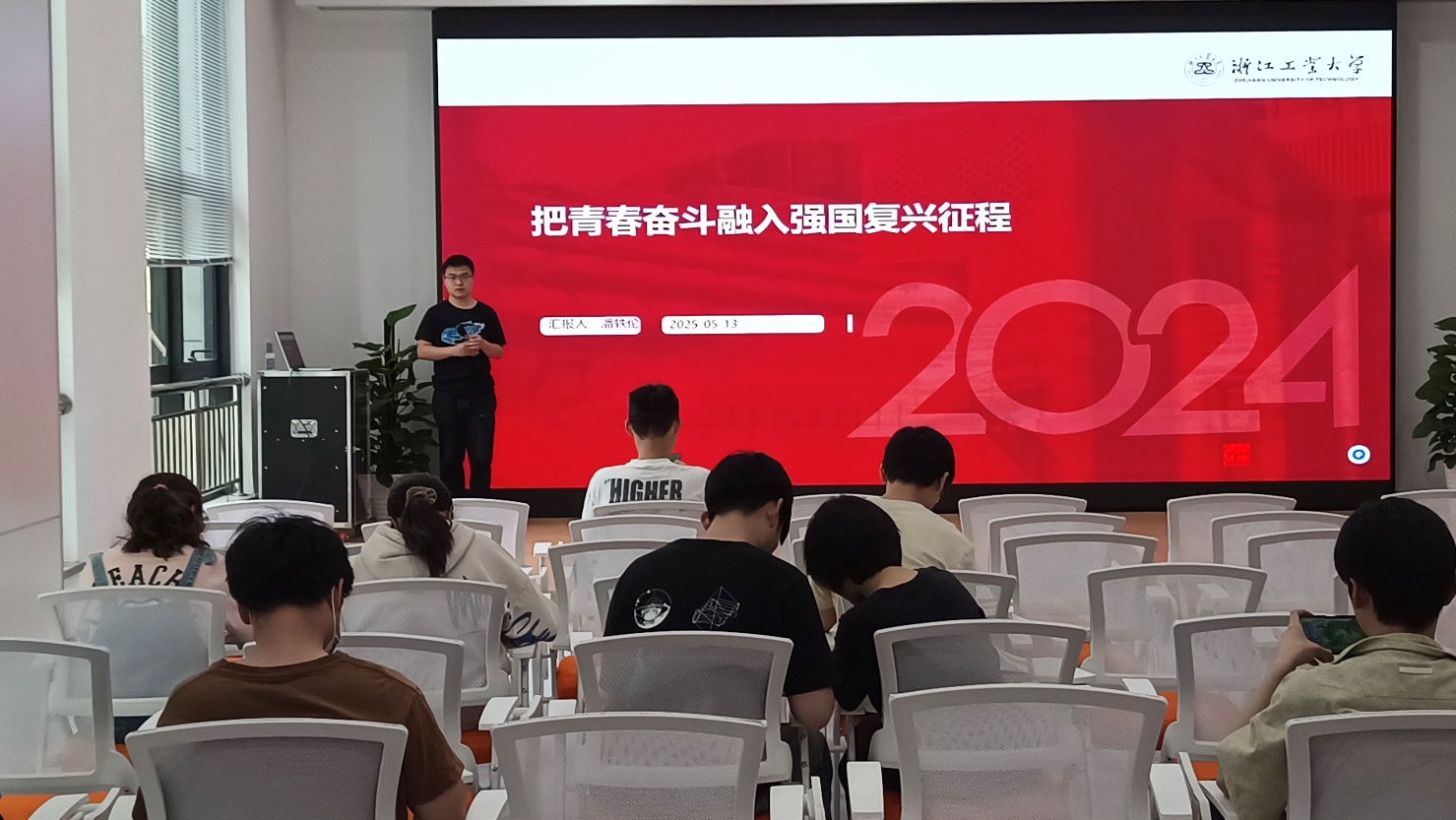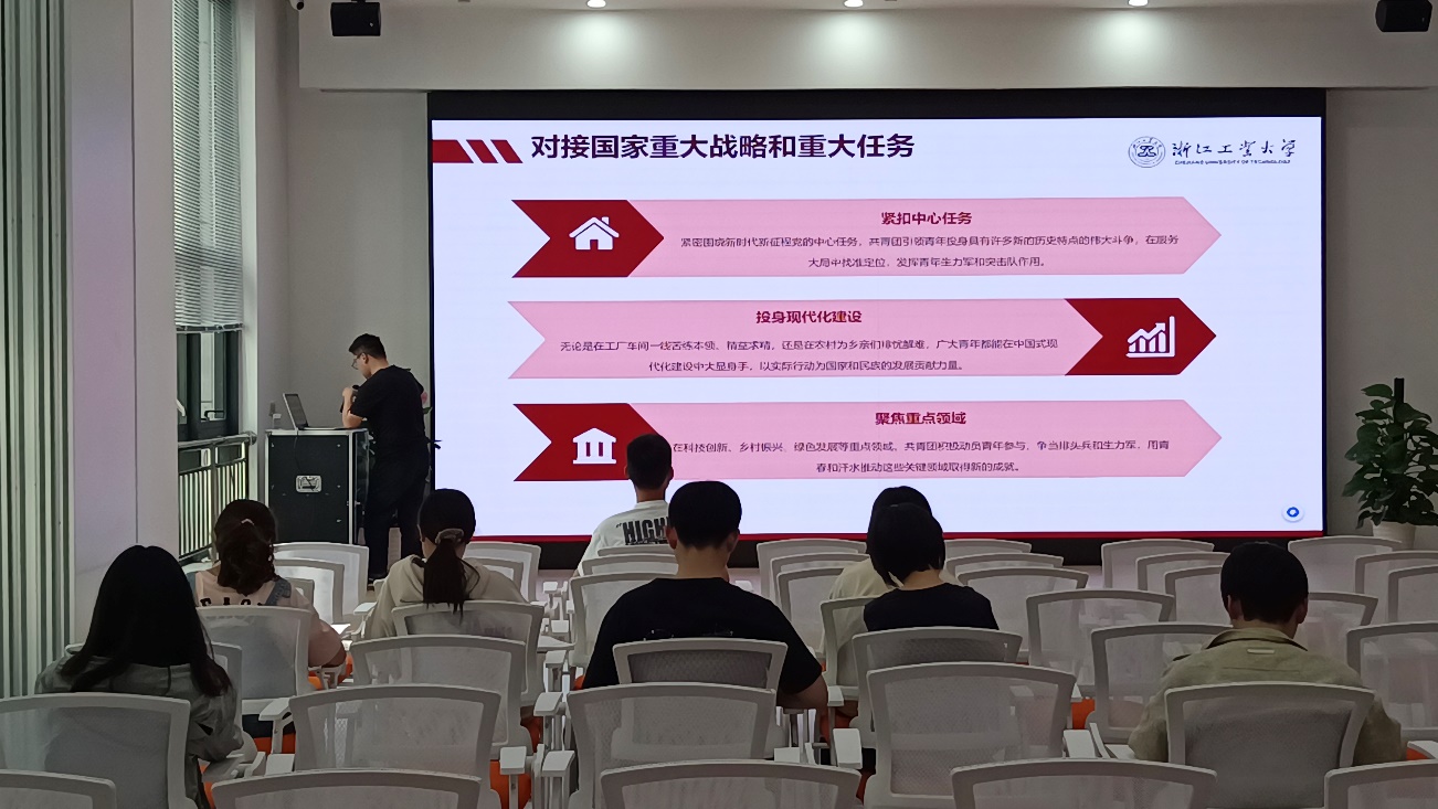 2025年5月13日星期二下午,化学工程学院学生党员、入党积极分子齐聚图书馆党群服务中心,参加由学院党员之家举办的“红色星期二”党员固定学习活动。本次学习的主题为“把青春奋斗融入强国复兴征程”,由化工学院催化剂工程方向研究生第四党支部潘轶伦同志担任主讲人。