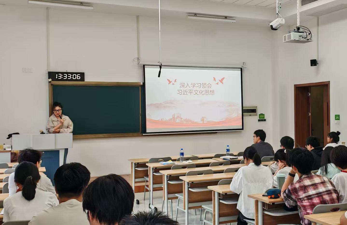 论坛还围绕“彰显着‘培根铸魂’的磅礴文化力量、‘赓续文脉’的坚定文化自信、‘明体达用’的高度文化自觉、‘强国复兴’的强烈文化担当”四个关键部分展开深入解读。通过丰富的案例、详实的数据以及生动的讲述,师生们清晰了解到党的十八大以来,在习近平文化思想指引下,宣传思想文化工作所取得的历史性成就与变革,以及中华文化的传承发展、创新突破,进一步增强了大家对中华文化生命力、创造力的自信与自豪,深化了对文化使命担当的理解与认识。
