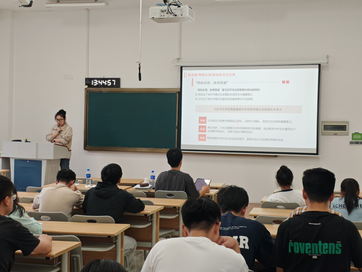 叶贝贝老师首先从宣传思想文化工作的重要性切入,指出其事关党的前途命运、国家长治久安以及民族凝聚力和向心力,是一项极端重要的工作,从而引出了深入学习领会习近平文化思想的必要性与紧迫性。