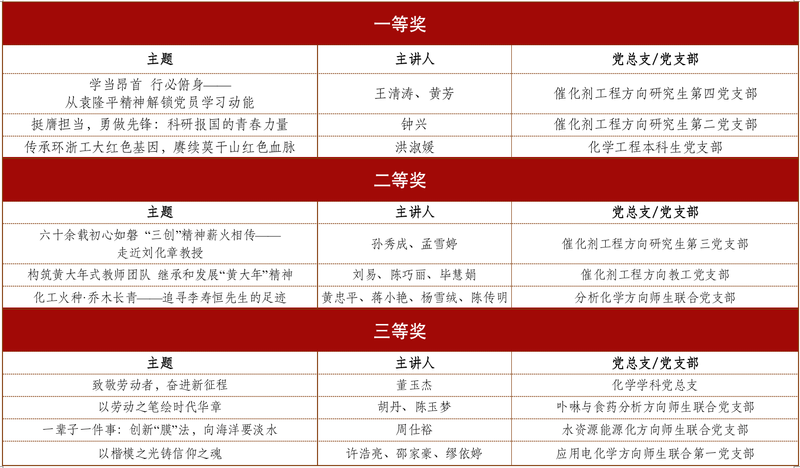 化学工程学院“初心耀征程·党课开讲啦”微党课大赛获奖名单