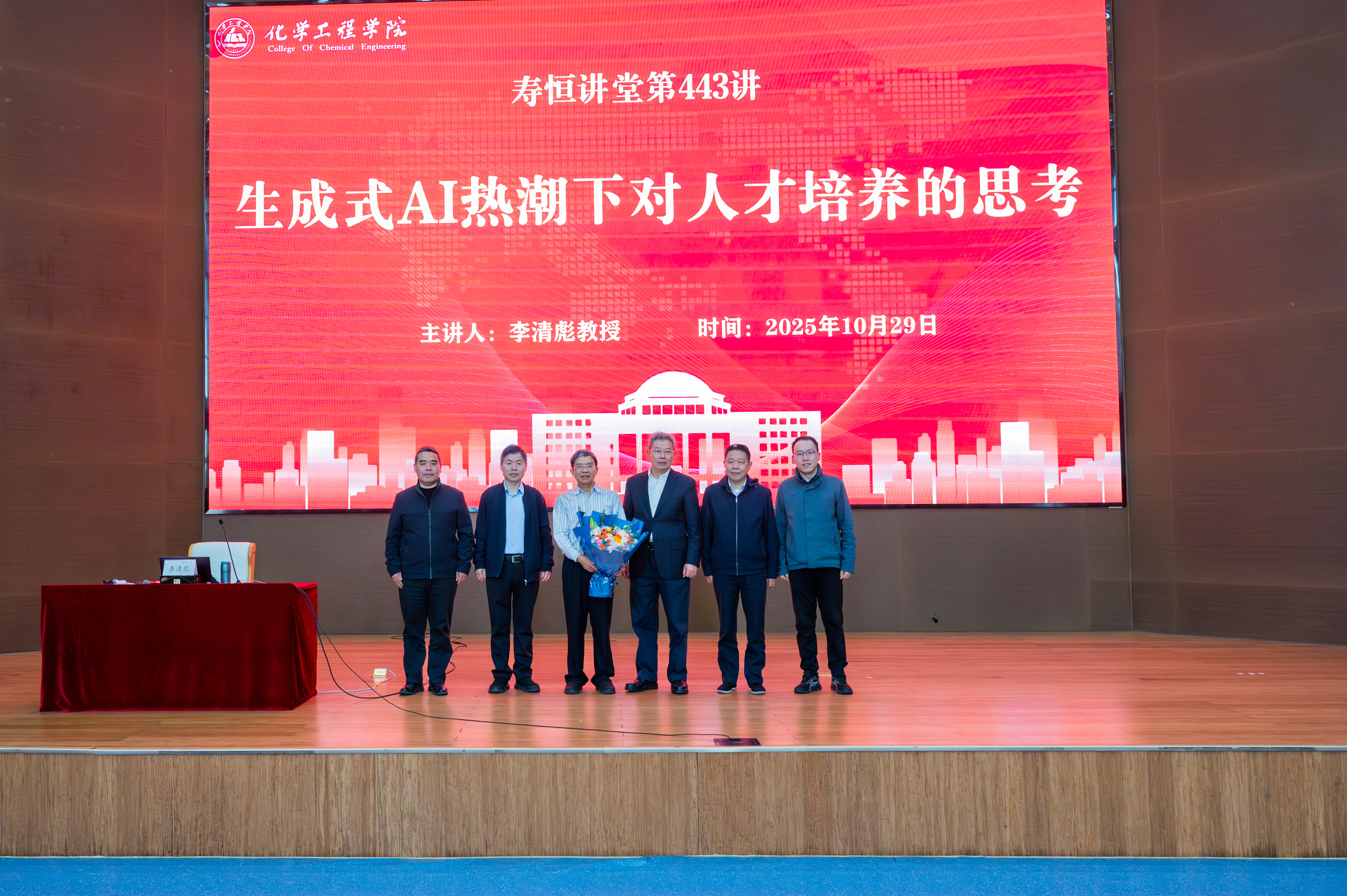 10月28日上午,化学工程学院“寿恒讲堂”第443讲在莫干山校区师生活动中心小报告厅顺利举行。中国化工学会会士,集美大学原校长李清彪教授应邀作“生成式AI热潮下对人才培养的思考”主题报告。加拿大工程院外籍院士、教育部长江学者李小年,学院院长王建国,党委书记王雷,副院长聂勇,党委副书记潘鹏程及全院400余名师生参加了此次活动。王建国主持活动。