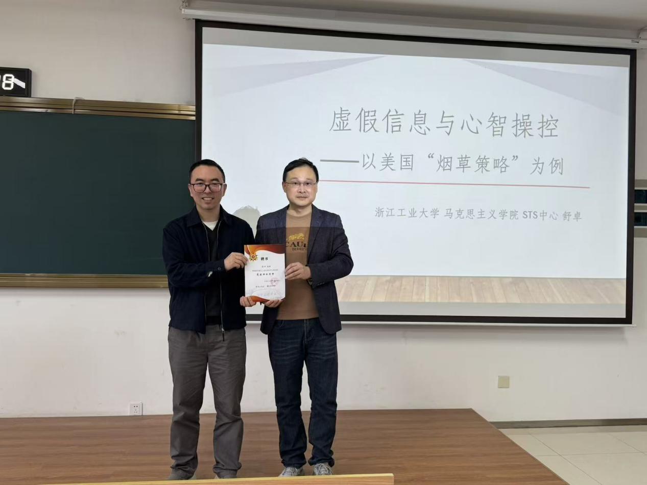 2025年11月6日中午12点,催化新材料与反应工程方向数工党支部与催化新材料与反应工程方向研究生党支部在莫干山校区公共教学楼212举办了“虚假信息的科技伦理问题”为主题的红色半月谈主题党课。本次党课有幸邀请到了舒卓老师作为主讲人,为在场师生带来了一场关于信息时代下科技伦理的深度思辨。
