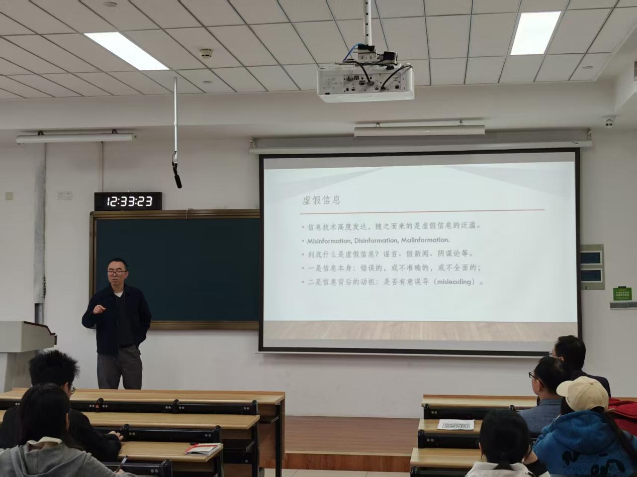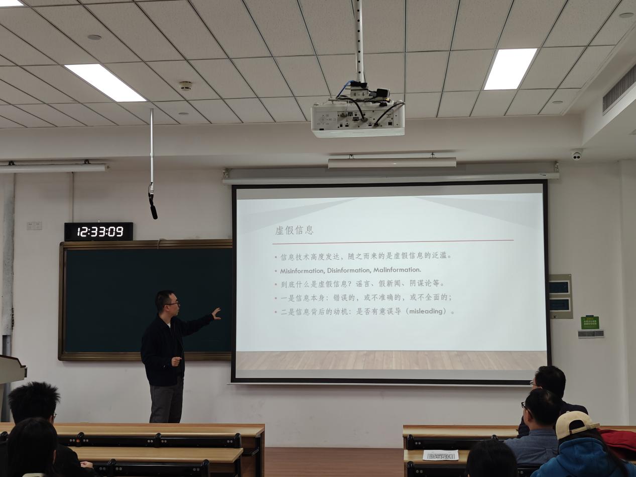 讲座开始,舒卓老师便直指核心:在信息技术高度发达的今天,人们同时面临着虚假信息泛滥的严峻挑战。他厘清了虚假信息(Misinformation)、虚假信息(Disinformation)和恶意信息(Malinformation)等概念,指出界定虚假信息需从两个维度审视:一是信息本身是否错误、不准确或不全面;二是信息背后的动机是否存在故意误导。这为整场讲座奠定了严谨的分析框架